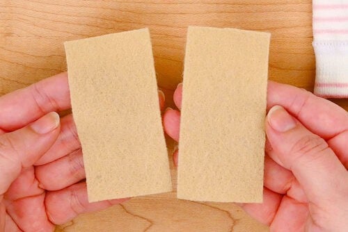 To make the gnome's hands, cut 2 rectangles of tan felt about 3 inches long by 1-1/2 inches wide.